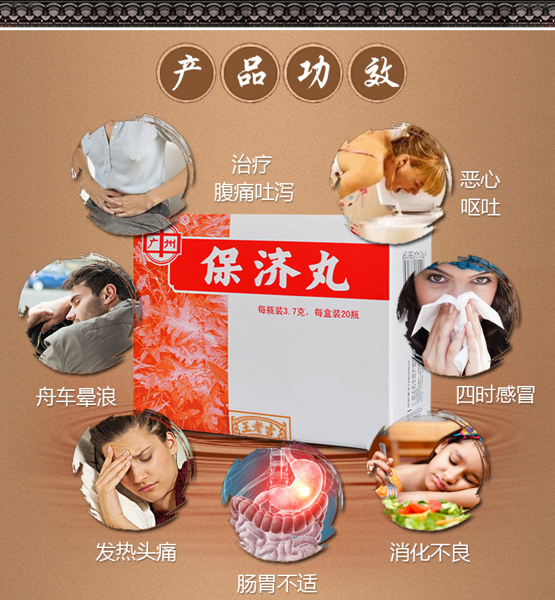 王老吉保濟(jì)丸20瓶/盒 惡心嘔吐頭疼拉肚子藥腹痛腹瀉祛濕